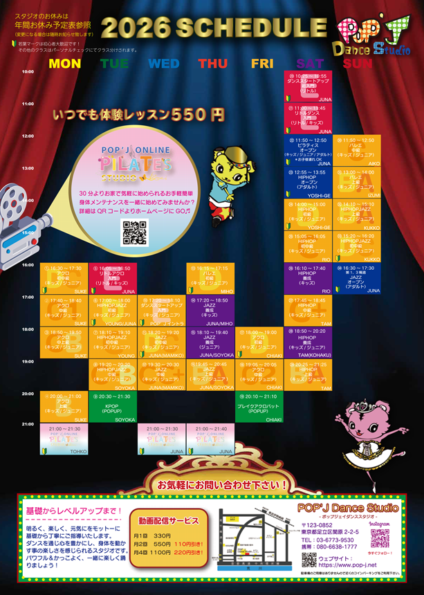 | ★JAZZクラス ★リトルクラス ★ダンススタートアップクラス ★イベントクラス ★ピラティスクラス |